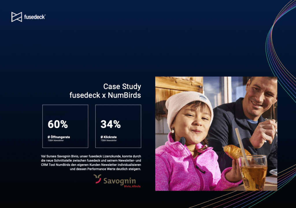 Val Surses Savognin Bivio konnte durch die neue Schnittstelle zwischen fusedeck und seinem Newsletter- und CRM Tool NumBirds den eigenen Kunden Newsletter individualisieren und dessen Performance Werte deutlich steigern.